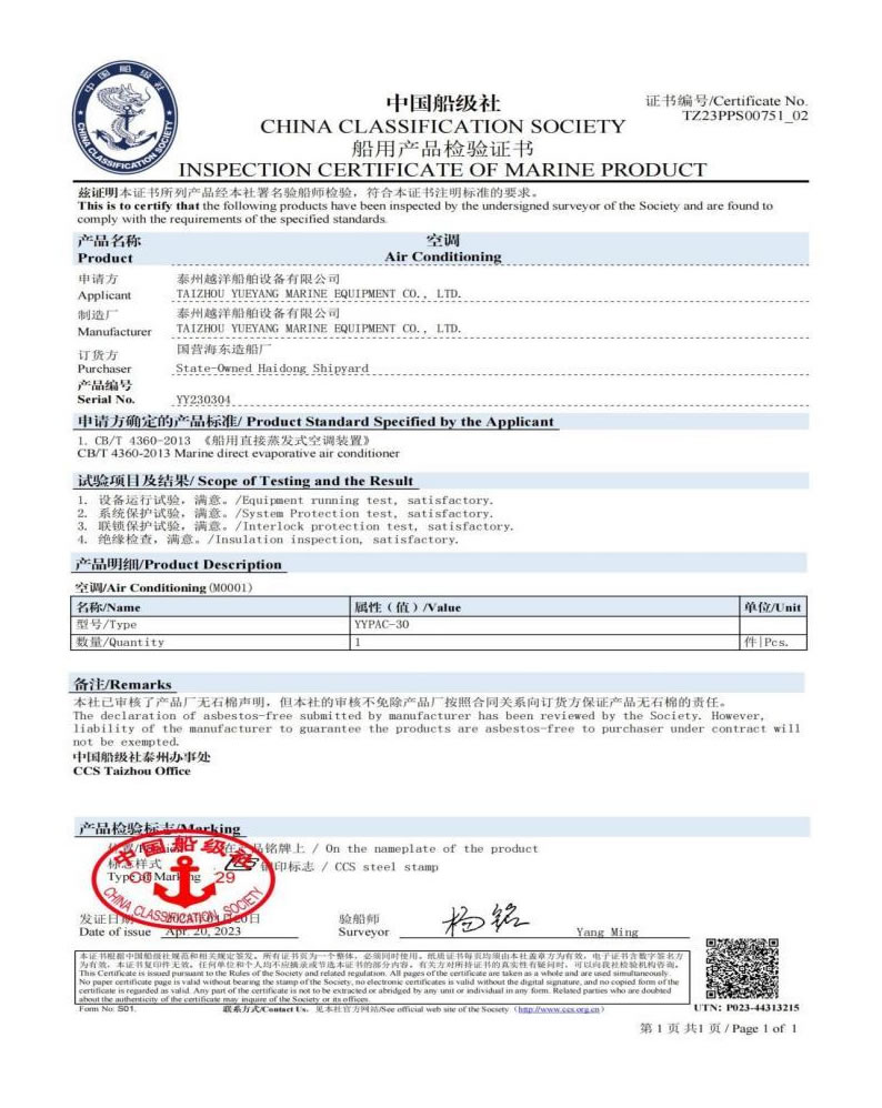 泰州越洋船舶設(shè)備有限公司多年專業(yè)從事艦船用空調(diào)、冷藏、冷凍設(shè)備、冷庫系統(tǒng),通風(fēng)安裝系統(tǒng)(空調(diào)通風(fēng),機(jī)艙通風(fēng),自然通風(fēng))等。本公司地處美麗的曲霞鎮(zhèn)工業(yè)園區(qū),固定資產(chǎn)1200萬人民幣,占地面積1.5萬平方米左右,公司產(chǎn)品廣泛用于海軍驅(qū)逐艦護(hù)衛(wèi)艦,補(bǔ)給艦,海警,醫(yī)療船,科考船等,如:“東方紅2“,“海大號”,“向陽紅06”,“向陽紅09”,“向陽紅03”,“大洋1號”,“東方紅3”,“向陽紅18”,“向陽紅52”,地質(zhì)級科考船“業(yè)冶錚”號海洋平臺。